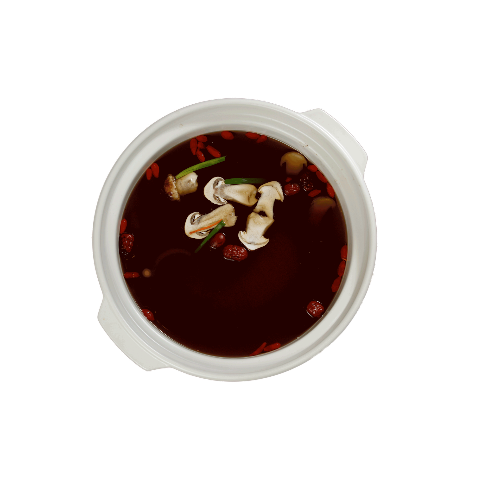松茸菌風味火鍋制作方法:鍋具中加入松茸菌風味底料100克,開水1500克,一起調勻;加入所有輔料即可涮煮食材。